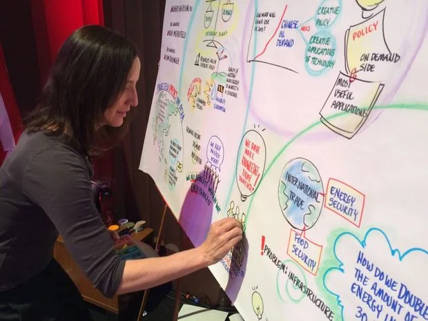 But for every fact mentioned or chart projected, Alece Birnbach has an ink marker or chalk chunk to memorialize the thought. And she’s got the artistic speed to turn panel discussions into murals before the speakers have used up their 90-minute talking time... Read the full article from the Missoulian here